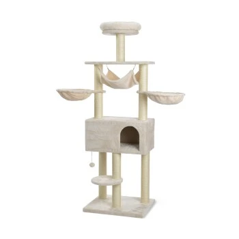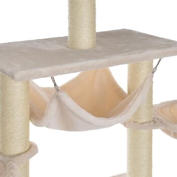 Das Sisal Material an den Pfosten bietet genug Kratzmöglichkeiten für deinen Liebling. Zudem besitzt der Baum Spielzeug zur Befriedigung der Spiellust deiner Samtpfote.