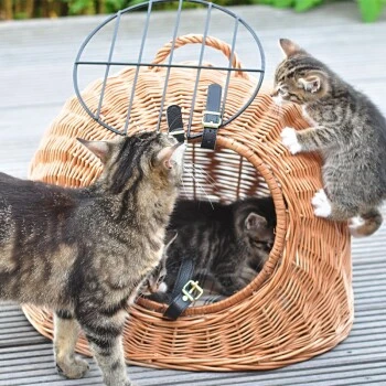 Die Höhle ist ein 100%iges Naturprodukt. Sie ist ebenfalls als Katzentransportkorb geeignet. Jeder Korb ist ein handwerklich meisterhaftes Unikat.