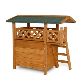 Katzenhaus Lodge (Holz,77x50x73 cm) mit Terrasse und Treppe