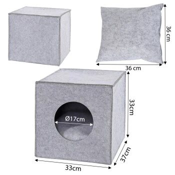 - MAßE: Mit 33x37x33 cm ist dieser Kuschelwürfel überall aufstellbar und durch seine Faltbarkeit sehr platzsparend. Du erhältst die Höhle in den Farben hellgrau oder dunkelgrau, wahlweise mit oder ohne Liegekissen.