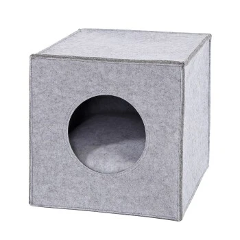Wenn du an einer Alternative für die gängigen Katzenbetten interessiert bist, ist die lionto Katzenhöhle eine ideale Lösung. Die würfelförmige Kuschelhöhle aus warmem und stabilem Filz beinhaltet einen Eingang mit einem Durchmesser von 17 cm und einer Wanddicke von 5 mm. So kann der faltbare Katzenwürfel ohne Bedenken als Katzenbettchen und Rückzugsort genutzt werden und vermittelt deiner Katze ein sicheres Gefühl und Wohlbehagen. Die Maße betragen 33x37x33 cm und somit ist diese Filzhöhle für einige gängige Regale wie beispielsweise dem Ikea Kallax oder Ikea Expedit Regal geeignet. Wenn du die Höhle in ein passendes Regal stellst, werden besonders Katzen, die sich gerne zurückziehen, voll auf ihre Kosten kommen. Natürlich macht die Katzenhöhle auch freistehend etwas her und bietet immer einen gemütlichen Schlafplatz. Wir bieten diesen Filzwürfel in den Farben hellgrau und dunkelgrau und wahlweise mit einem weichen Liegekissen oder ohne Kissen an. Der Bezug des Liegekissens kann zur Reinigung abgenommen werden.