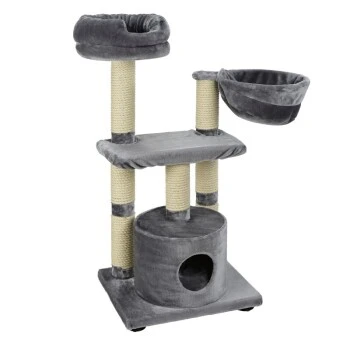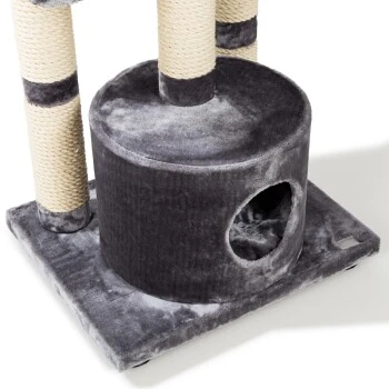 Der besonders hochwertige Kratzbaum Boogie von MORE besticht nicht nur durch seine extra große Liegefläche sondern auch durch die weiteren, zahlreichen Rückzugsmöglichkeiten wie die geräumige Höhle oder die kuschelig, weiche Liegemulde, sowie das große Bettchen. Die integrierten Sisalsäulen laden Ihren Stubentiger dazu ein, den natürlichen Kratzinstinkt ausgiebig zu befriedigen und somit Teppiche und Möbel vor unschönen Kratzspuren zu verschonen. Dank seines schlichten und dennoch zeitlosen Designs, lässt sich dieser Kratzbaum nahezu problemlos in jede Wohnumgebung integrieren. Für eine einfache und schnelle Montage sind Werkzeug und Aufbauanleitung bereits im Lieferumfang enthalten. bei Verunreinigung können die abziehbaren Bezüge der Liegeflächen ganz einfach bei 30° in der Waschmaschine gesäubert werden.